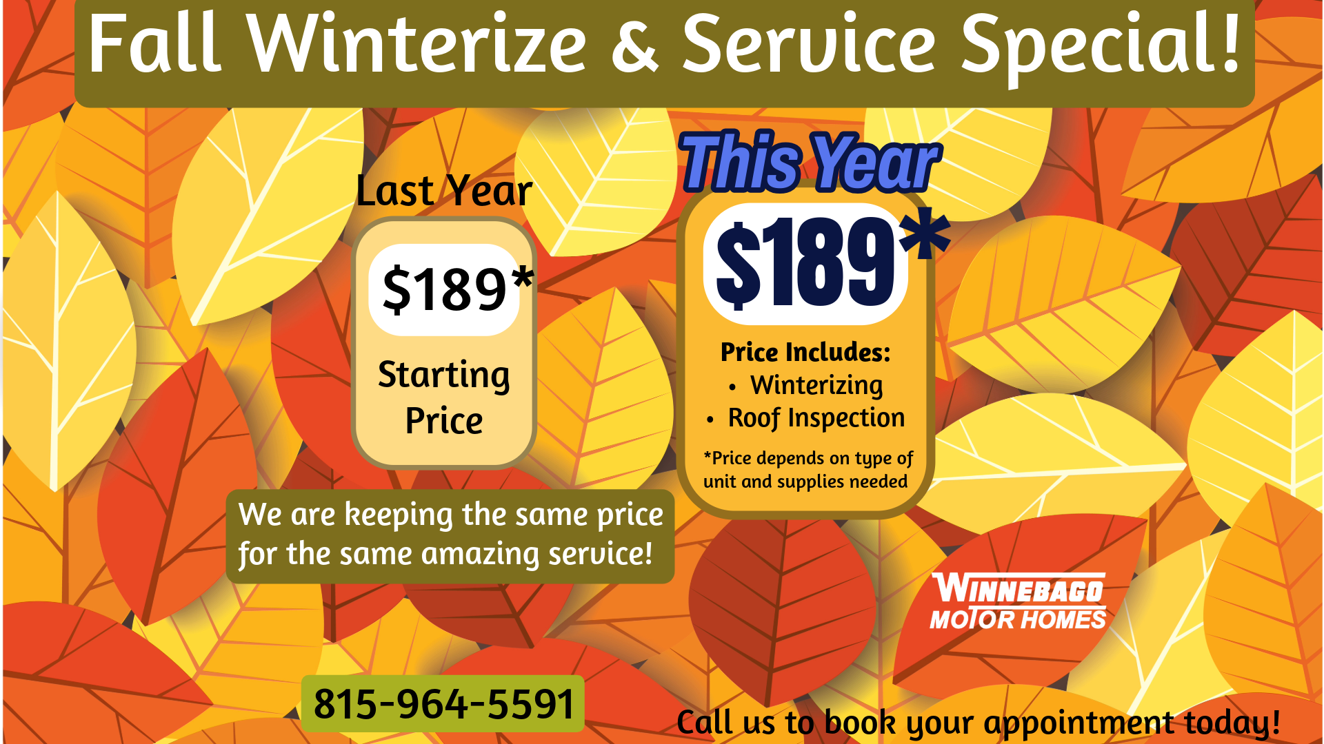 Winnebago Motor Homes offers regular RV maintenance and can also help you with repairs and body work. We have 7 service technicians (76 combined years of experience!) that are Winnebago certified. We have 2 service buildings with 8 service bays. We specialize in Winnebago and Itasca, but can service other brands as well.